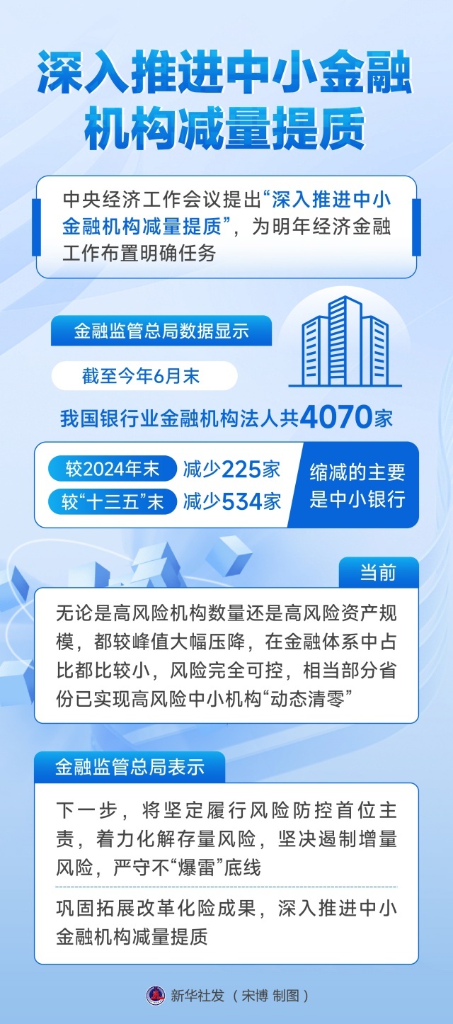 “明年是‘十五五’开局之年,实现良好开局意味着要推动经济实现质的有效提升和量的合理增长,这对金融服务提出更高要求。”娄飞鹏表示,中小金融机构减量提质,一方面要继续完善内部治理,提升风险管理能力;另一方面要推动扎根当地开展特色化经营,更好服务实体经济。